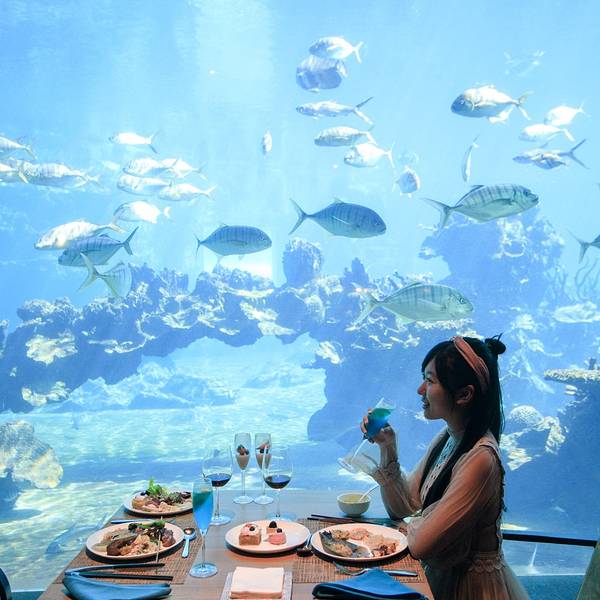 海棠湾美食榜第一的网红餐厅,必须写上来。一边吃饭一边看鱼也是不要太浪漫。6.天房洲际海底餐厅