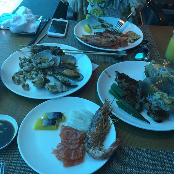 不错哦~高大上!团购价800一个人果然不是虚的~洲际的海底餐厅逼格高,看介绍还去入选了2015最浪漫餐厅,果然很浪漫呢,菜品很精致,不算特别多但是味道不错~是我吃过最贵也最好吃的自助餐厅,表演有待提高~需要提前预定才有好座位~很精致,很漂亮!眼花缭乱鲨鱼最帅甜点不错,我平时本来都不吃甜心鹅肝西瓜汁&橙汁这个排骨是最好吃的可以吃饱饱,悠闲地散步回去~晚上的免税店依旧那么光彩夺目~犹如明珠~奢侈!