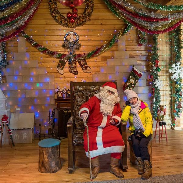 到了圣诞村,买了门票,进去感觉还不错。想想能见到“正宗”的圣诞老人,还是蛮激动的北极圣诞村还是挺有意思的。圣诞村最大的卖点应该就是这里常驻有芬兰的圣诞老人。工作人员介绍说目前这位是世界排名第4的(每半年轮换一次)。想想能见到“正宗”的圣诞老人,还是蛮激动的。到了圣诞村,买了门票...北极圣诞村还是挺有意思的。圣诞村最大的卖点应该就是这里常驻有芬兰的圣诞老人。工作人员介绍说目前这位是世界排名第4的(每半年轮换一次)。想想能见到“正宗”的圣诞老人,还是蛮激动的。到了圣诞村,买了门票,进去感觉还不错。村内只有我们一行,工作人员说,圣诞期间会很热闹,还会举行圣诞婚礼,哇,想想都冷,零下四、五十度啊。进到圣诞小屋,圣诞老人已经穿戴好啦,漂亮的小屋,和蔼可亲的圣诞老人,真有点童话的感觉呢。和圣诞老人合影需要另外交费,圣诞老人还主动提出和我们一起合影,大家都很开心。一行中有一位专业的英语翻译,和圣诞老人聊得很开心。工作人员说,由于语言不通,平时圣诞老人很寂寞的。我们都坐了圣诞老人的办公桌,并由代表留了言,由于留言有中芬友谊的内容,圣诞老人特意说他就是为了中芬友谊来的。我们离去时,他还在楼上的窗口向我们用力地挥舞着手杖。村里还建有白雪公主和小矮人的屋子,还有申请了吉尼斯纪录的圣诞袜塑像。估计小孩子们会很喜欢这个地方。 展开