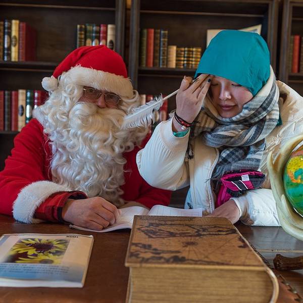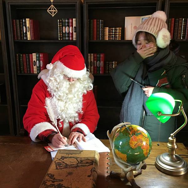 里面真的要请一位芬兰的兄弟充当圣诞老人,在他的办公室里,他会热情的和你合影,指着地球仪告诉你芬兰的家乡和美丽的极光现象,对了他还入乡随俗的给自己起了个中文名字——简乐恩(音译)。