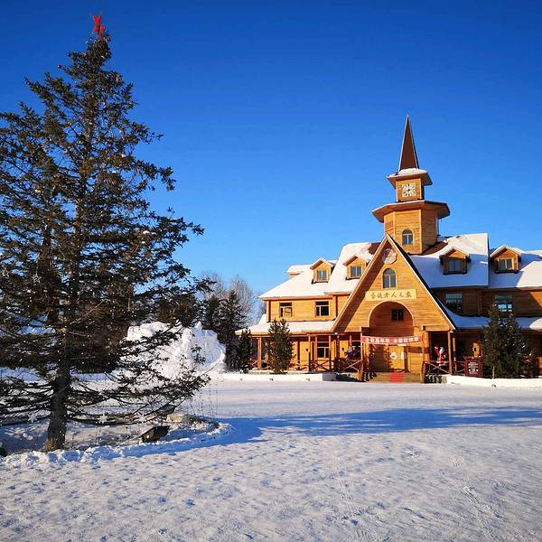 是北极村标志性建筑,独具异域冰雪风情北极圣诞村据说是英国人设计的,位于中国最北的边陲小镇北极村东面,有圣诞老人之家、最北邮局纪念品商店、光电圣诞树等建筑。是北极村标志性建筑,独具异域冰雪风情。