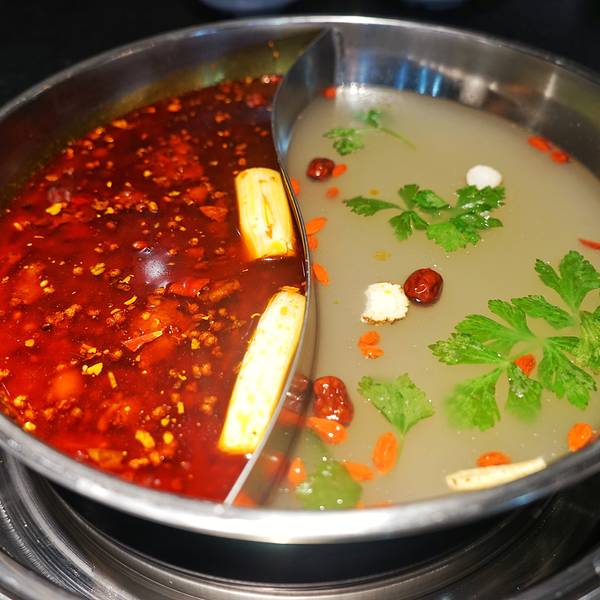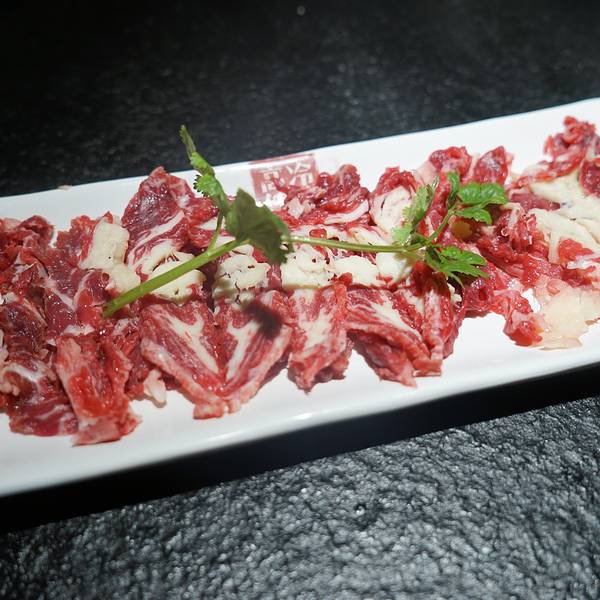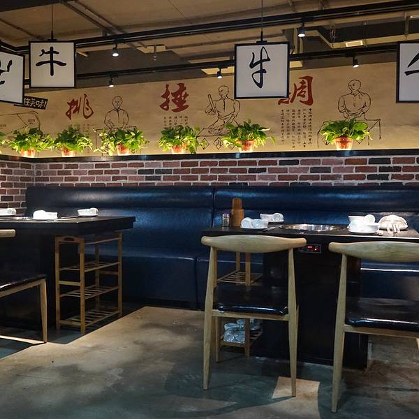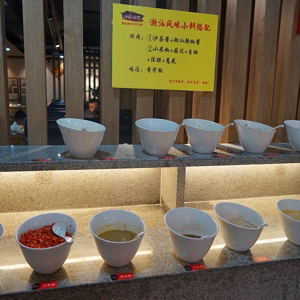 作为牛油火锅的忠实迷妹,还是有些许抗拒清清淡淡的潮汕牛肉火锅,总觉得没有红油的火锅,欠了几分味道,也少了几分尽兴。即使在广州生活了四年,也没有尝试过一次潮汕火锅。但近来,西安潮汕火锅的兴起,还是散发出了不可抗拒的吸引力,不由的好奇没有了火辣的拥吻,潮汕火锅又应该品些什么呢?位于曲江,他们家在金鹰商场,曲江地方比较难停车,所以很少来这边约饭。金鹰商场可能是新建的,有免费停车18个小时的福利,也不需要消费小票什么的,很方便。地下停车场直接搭乘电梯到4楼,出口右手边就可以看到这家店,门面很大,也比较好找。看到他们家的锅底有鸳鸯锅的选择,所以果断选择了鸳鸯,36元的锅底,价格也比较实惠。清汤是用牛骨熬制而成,里面应该还有参类,开吃前,盛了一碗清汤,撒上一把芹菜末,品尝一下汤品的原汁,淡淡的参味,搭配上浓郁的骨香,重新刷新了清汤火锅的认知,着实不错。辣味锅稍显逊色,可能是吃惯了醇厚的牛油火锅,他们家的火油比较少,所以口感也稍微清寡一些,味道也有些淡。自助式酱料台,听说,牛肉火锅跟沙茶酱是绝配,然而吃不惯沙茶酱的我也是没有做尝试。旁边还有一些免费的小吃和水果提供。拿到菜单的时候,还是被震撼到了,一般火锅店的肉类标配:肥牛羊肉,到了这里变为了吊龙、雪花牛肉、脚趾肉、牛舌、牛百叶等等,不由得佩服潮汕人,确实吃得精,而且每一个部位的肉,涮煮时间也有不同,对时间也是做了明确的规定的。这吃法,确实震撼~第一次吃,这么多的选择摆在面前,也是犯了难。于是只好看着网上大家的推荐来点餐了,选择了最多人点的吊龙、牛筋丸、牛腩,操作台透明玻璃,工序一览无余,工作人员在档前刀起刀落,运刀如风,娴熟的切肉。吊龙肉质很嫩,三起三落,大概13秒的涮肉时长,肉质偏肥一些。牛筋丸的味道确实地道,在鲜嫩的牛肉中,加入了一些嫩筋,嚼劲十足。牛腩中规中矩,煮久一点口感更佳。