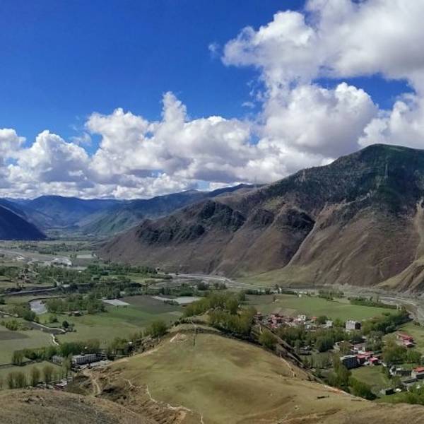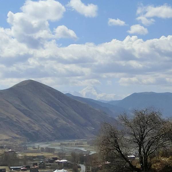 这儿只能看到贡嘎雪山的一角,大部分都被前面的山阻挡了。