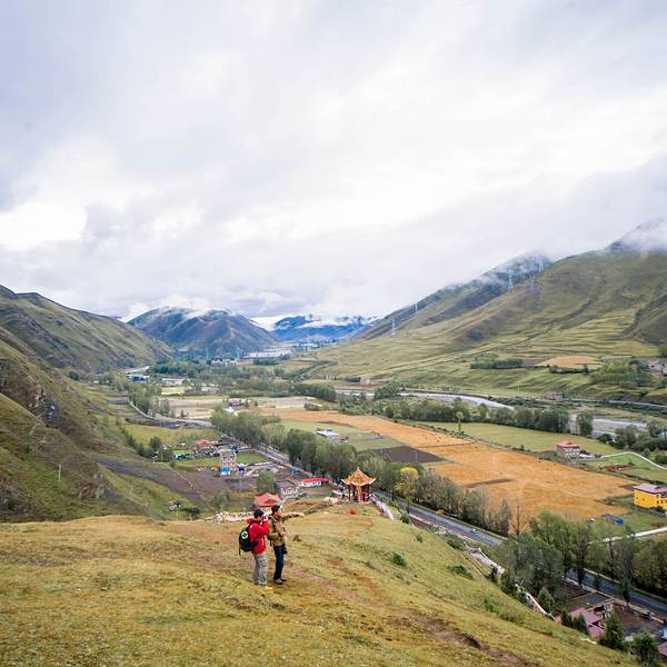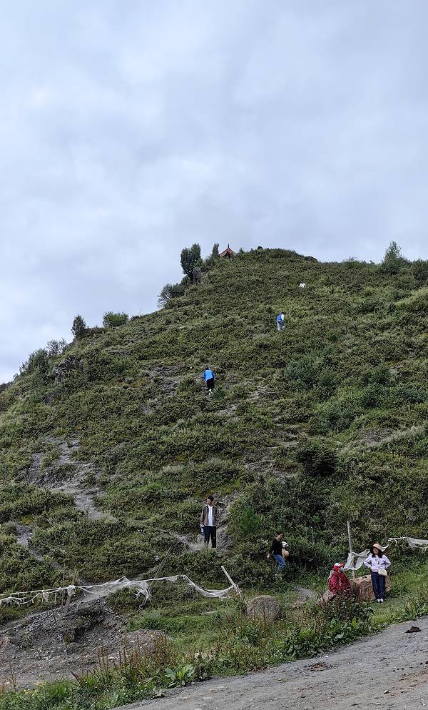拍了几张高出的风景后赶紧小心翼翼的下去和乔子汇合,途中又体验到了什么叫上山容易下山难的窘境观景台不高,只花了10分钟不到抄近路就上去了。有一个小亭子供游客休息,见现在四下无人,便拿出手机三脚架和蓝牙控制器,开始一个人的装逼装完一波b后我发现不远处还有一个山头,很想看看那上面的风景是如何,说...观景台不高,只花了10分钟不到抄近路就上去了。有一个小亭子供游客休息,见现在四下无人,便拿出手机三脚架和蓝牙控制器,开始一个人的装逼装完一波b后我发现不远处还有一个山头,很想看看那上面的风景是如何,说不定还能见到远处的贡嘎呢,于是说走就走,一边爬一边喘着气上了去。然后,,我又发现了一座更高的山头在旁边,爬不爬上去呢,爬吧,有点危险,而且时间不早了,乔子也刚问我在哪儿了,不爬吧,又觉得心欠欠的。一阵纠结之后我还是选择迈出了脚步,这个山头比刚才一个更陡峭,走得更小心,也更喘,爬上去之后整个背都大湿了,然后,,我终于深刻领悟到什么叫人外有人,天外有天,山外还有山了,,,这座更高的山头仿佛俯视着我“小样儿,来啊,爬上来啊”。这次我果断放弃,我怕再这么爬下去不崴个脚摔下去也会因为出汗受风感冒了。拍了几张高出的风景后赶紧小心翼翼的下去和乔子汇合,途中又体验到了什么叫上山容易下山难的窘境从高处俯视整个新都桥~虽然号称“摄影天堂”,但由于过度开发,曾经的天堂也快跌下神坛了回到青旅已是中午,吃了泡面打算休息一下就去搭车,结果遇到把衣服掉在青旅开到了山上才想起回来拿的马哥,老板对我说