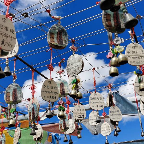 PS:景点10元/人,停车10元/辆,大概十多分钟步程,也可以体验骑马上山。风铃&信仰新都桥贡嘎雪山观景点——可能是天气不好,又或许是早上的光线欠佳,只见朦胧雪山尖。