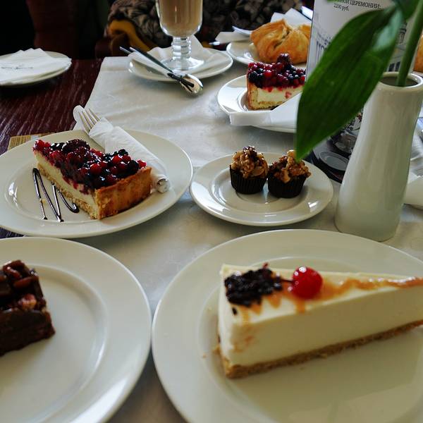圣彼得堡图书大楼外观非常漂亮,走在涅瓦大街你的眼球一定会被它吸引。和喀山大教堂隔着涅瓦大街相望,我们登上图书大楼并不是为了看书,俄文于我犹如天书。图书大楼二楼咖啡店的落地玻璃窗正对着喀山大教堂,这里是瞭望喀山大教堂全景和欣赏涅瓦大街的最好位置。这家咖啡店的甜点和饮品都很美味,想象着坐在玻璃窗前,装腔作势的喝咖啡、吃点心,是多么美妙而有腔调的的事情。事实是,由于这家咖啡店的位置太好,生意火到要等座,想要在这里装腔作势扮文艺腔不太现实,很佩服能在这个嘈杂的环境里看书的读者。图书大楼就是很有名的书店,这里除了卖图书、文具还有大量的旅游纪念品,冰箱贴、套娃、明信片、各种小玩意应有尽有。做工不算精细,但是价格美丽,很多当地人也来这里购物。 顺便的很多人推荐俄罗斯徽章,在莫斯科没找到,在图书大楼隔壁的旅游纪念品商店找到了,但是价格不便宜。 有说俄罗斯娇韵诗护肤品很便宜的,同行的伙伴在摩尔曼斯克买了,同样的精华素圣彼得堡的价格要贵一些。