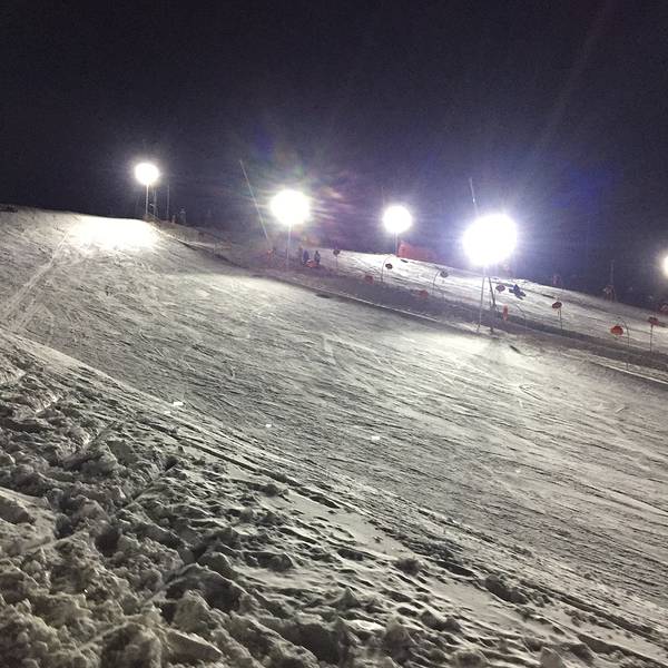 夜场只开放初级道,中、高级道5:00关闭,剩下的两个小时我们只能在初级道上玩耍了。因为先生好久没滑雪了,正好在初级道上先练练手,我对这样的安排还挺满意呢……