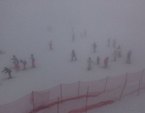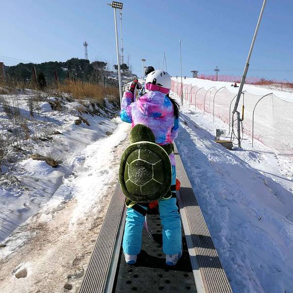 四条初级道上都有雪友在上下翻飞,每条魔毯上至少还有十多个雪友在徐徐上山。但因为雪道多,倒也不显得拥挤。轮胎和香蕉船滑道上,大人孩子的欢呼声此起彼伏,好一番热闹的景象。