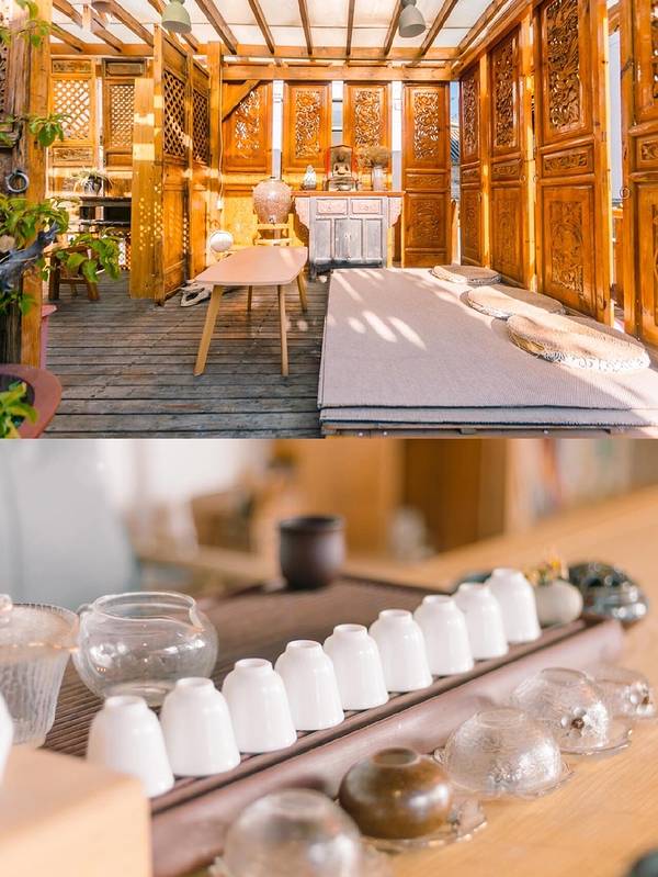 早起的时候可以到24h开放的书吧选一本书(值得一提的是民宿主很有品,书吧里收藏了很多书),翻开自己被吸引的章节,然后到开放式厨房做一杯精美☕️的咖啡,用这样的方式开启美好的一天,去消除旅途中的疲惫。晚上逛完回来还可以在开放式厨房自己做一顿饭,民宿主人很好还会为你准备各种食材。吃完饭可以在这里弹弹钢琴或者到茶室喝喝正宗的云南普洱,