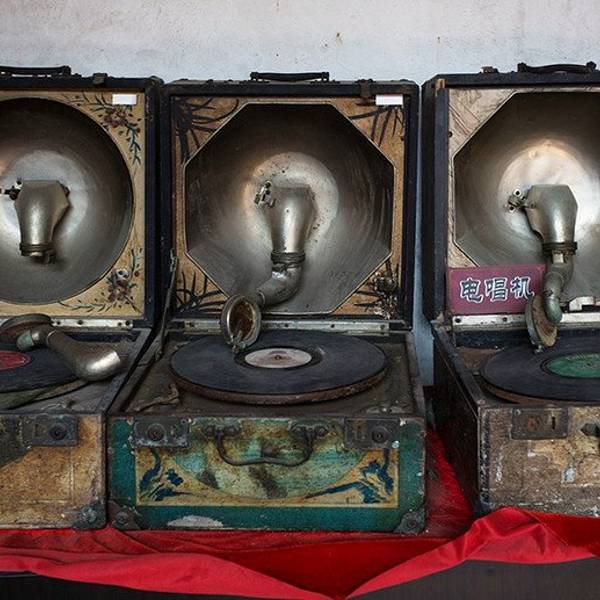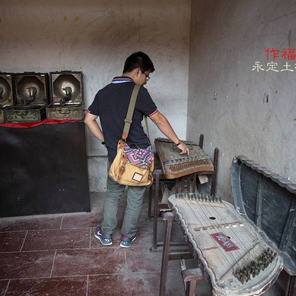 喜欢乐器的加荣试着拨动古琴。荣昌楼现在是中川文化陈列馆,是中川文化之河的汇聚地