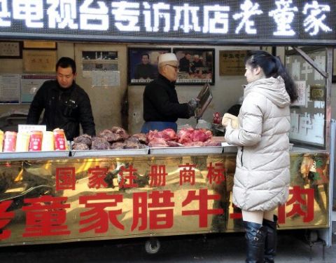 ...处主要集中在钟楼至桥梓口附近,尤其是路北的鼓楼回民街,本地风味聚集,包括同盛祥,贾三灌汤包等等