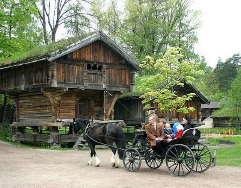 挪威民俗博物馆是欧洲较大的露天博物馆,主要展出挪威国内木结构房屋和民用家具。 挪威民俗博物馆成立于1894年,园内充满绿色,如同自然形成的公园,自然散落着从挪威各地搬来的170座住居和民间建筑,其中较古老的一座是有1200年历史的木板教堂。在农家的房屋内,还有身穿传统民族服装的农家女表演手工艺制作,并向来访者介绍各种建筑特色及生活起居等。在“古老街市”展区,再现了过去的街貌,店铺和药店均按照当时的风格布置,游客可去古老的糖果店里购物,也可到古斯塔夫教堂作弥撒,还可以参观萨米文化,选购传统手工艺品、民族文化和与工艺有关的书籍。
