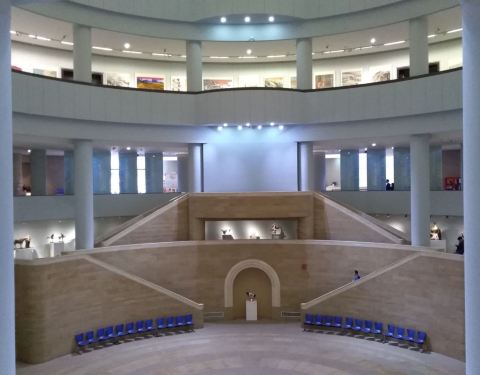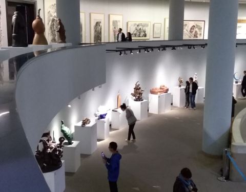 陕西美术博物馆但于省体育馆旁边的长安北路14号,就在省图书馆的旁边,是一座现代化建筑物,里面的...陕西美术博物馆但于省体育馆旁边的长安北路14号,就在省图书馆的旁边,是一座现代化建筑物,里面的展示场是呈现环形结构的,中间部分空了出来,环境状态感觉宽畅。