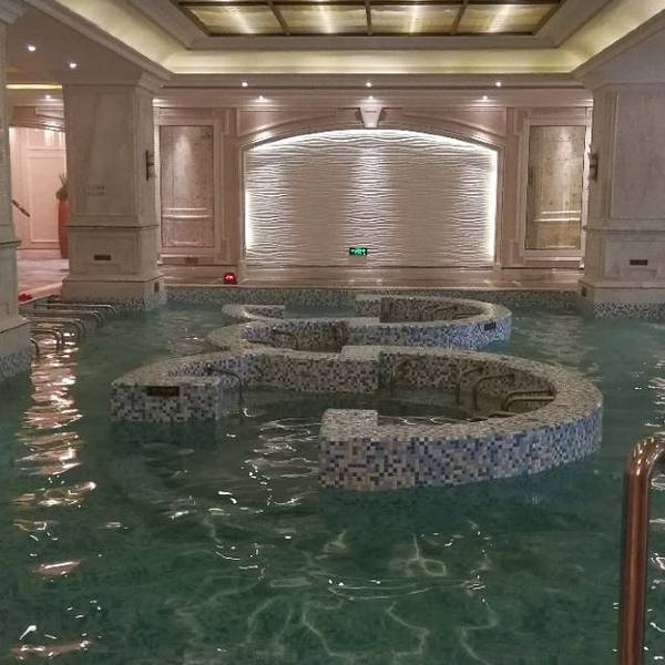 很漂亮的温泉,喜欢桑拿室,躺上面热呼呼的,很舒服!游泳♀️池不是很深,小孩子喜欢在室内浅水区玩