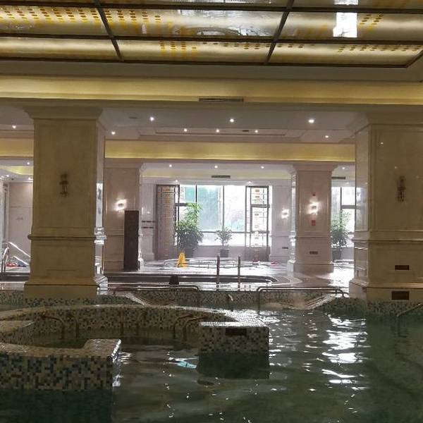 很漂亮的温泉,喜欢桑拿室,躺上面热呼呼的,很舒服!游泳♀️池不是很深,小孩子喜欢在室内浅水区玩很漂亮的温泉,喜欢桑拿室,躺上面热呼呼的,很舒服!游泳♀️池不是很深,小孩子喜欢在室内浅水区玩。偶尔也会去儿童乐园区,如果能有那种大型水上游乐就更好了,室外环境很美,温泉对面是希尔顿,可以拍照