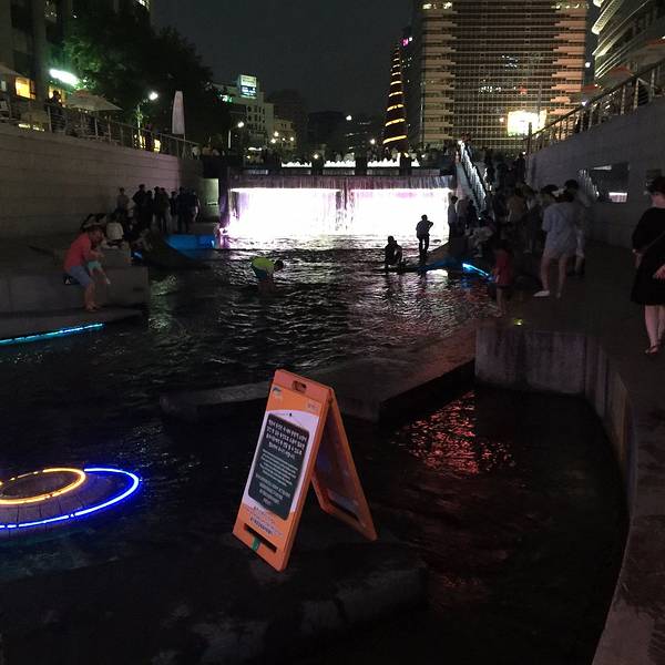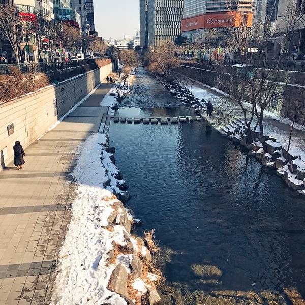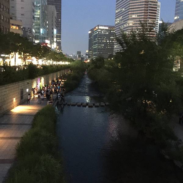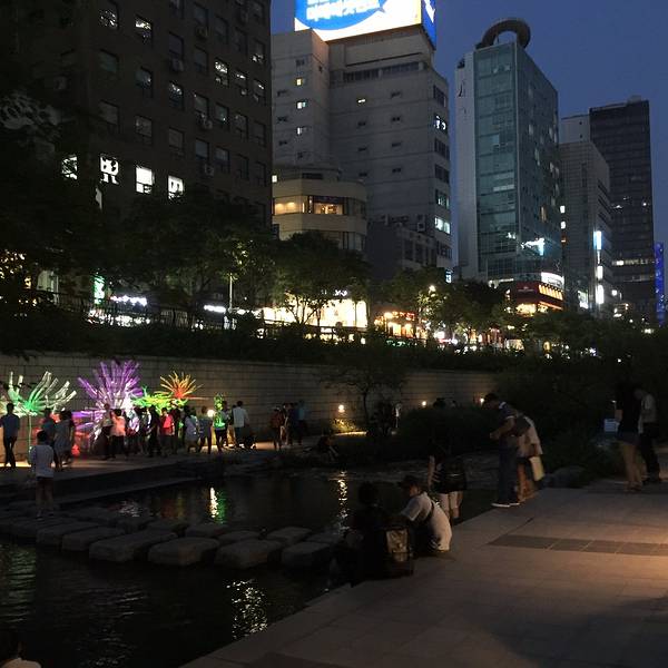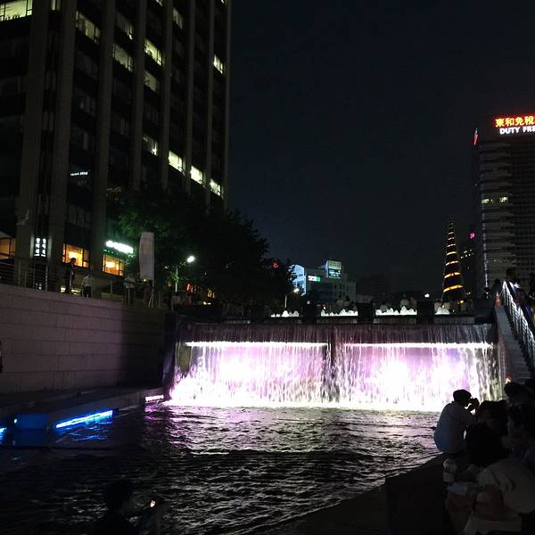 清溪川(청계천),是一条自西向东流淌在首尔市中心钟路区和中区之间的人工运河。自2003年7月起,在首尔市长李明博的推动下首尔对清溪川进行重新修复工程,重新挖掘了河道,为河流绿化美化、灌水、种植各种植物,并征集兴建了多条各种特色的桥梁横跨河道。如今,这里已然成为了首尔最受瞩目的景点之一。清溪川周围设有配置三色照明的蜡烛喷泉和4米高的双层“瀑布”,瀑布的两侧,用石材形成了八石潭,象征八道。每年4月至11月的周末,都会举行“清溪川文化庆典”,场面热闹非凡。