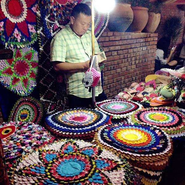 晚上回到建水古城比较早,离晚餐还有一点儿时间,于是和小伙伴们一起到紫陶街逛了逛。紫陶街比我想象的大了太多,这条街上除了有紫陶销售及展示之外,还有许多的休闲体验和度假观光的项目,是一个适合瞎逛逛的地方。下午刚在团山民居看到了这些手工艺品,晚上回到建水县城就又看到了,可惜带不了啊带不了。还有各种稀奇古怪的小玩意儿。紫陶街上还有许多的美食,大部分都是建水特色的小吃,看起来都很诱人啊。这个豆腐我肯定会喜欢吃,可惜事先知道晚上会去吃好吃的,果断忍住冲动。夜晚的紫陶街非常的热闹,有人络绎不绝。