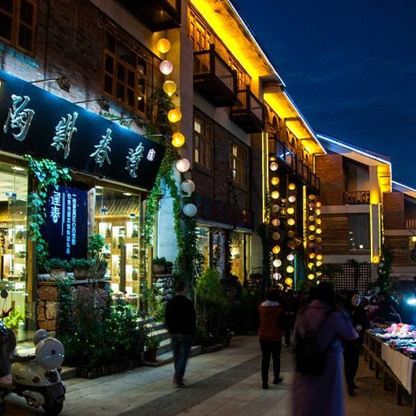 吃晚了晚餐,不妨顺着广慈湖走一走,五分钟就到了紫陶街,感受一下这里的夜市。紫陶街应该是来建水必打卡景点之一吧。这条街不长,如果单走,三分钟就走完了。但就是两旁的紫陶店,还有沿街摆起的摊子,让你迈不...吃晚了晚餐,不妨顺着广慈湖走一走,五分钟就到了紫陶街,感受一下这里的夜市。紫陶街应该是来建水必打卡景点之一吧。这条街不长,如果单走,三分钟就走完了。但就是两旁的紫陶店,还有沿街摆起的摊子,让你迈不开步伐,并且,满街的紫陶杯子、茶具等,总能找到几样你喜欢的小东小西。倘若不赶时间,还能走进店里,感受一下自己做陶的乐趣。亲手做陶一般是按照时间收费的,如果你的作品完整的话,老板会按照你预留的地址寄给你的,当然,邮费你要自己出。晚上的紫陶街和白天是完全不一样的。晚上在这里就是逛、吃,逛、吃,全国的夜市小吃街基本上都是一样的,从鲜榨的果汁,到义乌的小商品,这就是逛夜市的标准姿势了,涌动的人头,驻足观看的游客,就是那么热闹。不过,可以买上几件自己喜欢的陶艺品,或是杯子,或是壶。把拍照的时间,留给第二天的白天吧。