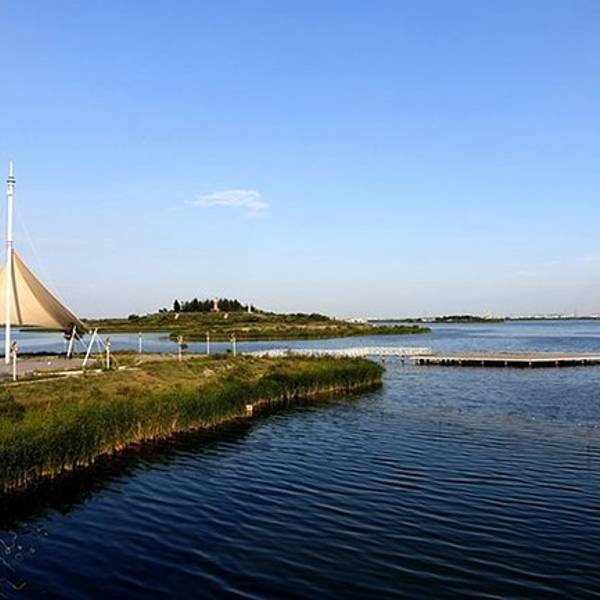 星海湖与贺兰山遥遥相对,是历史上古沙湖遗址之一,与著名的旅游景区沙湖是同一水系。五湖四海纪念碑
