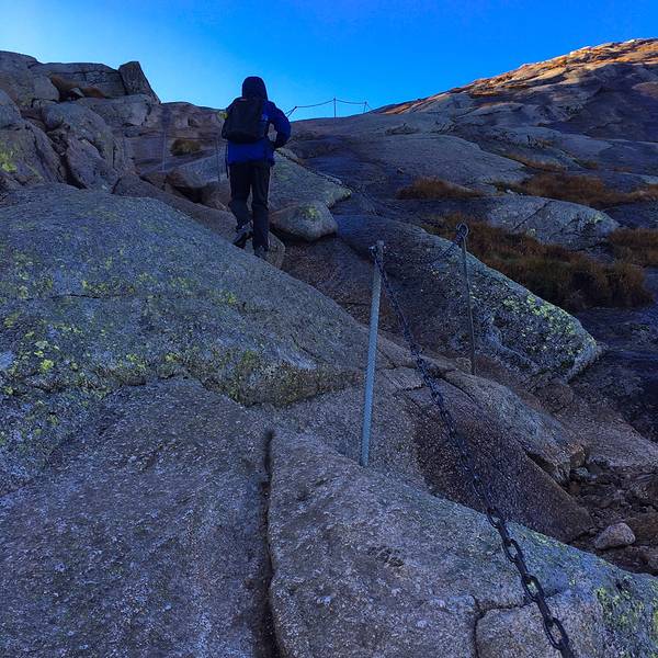 这个斜坡有多少度,请自己评判,这不是爬山,是攀岩啊