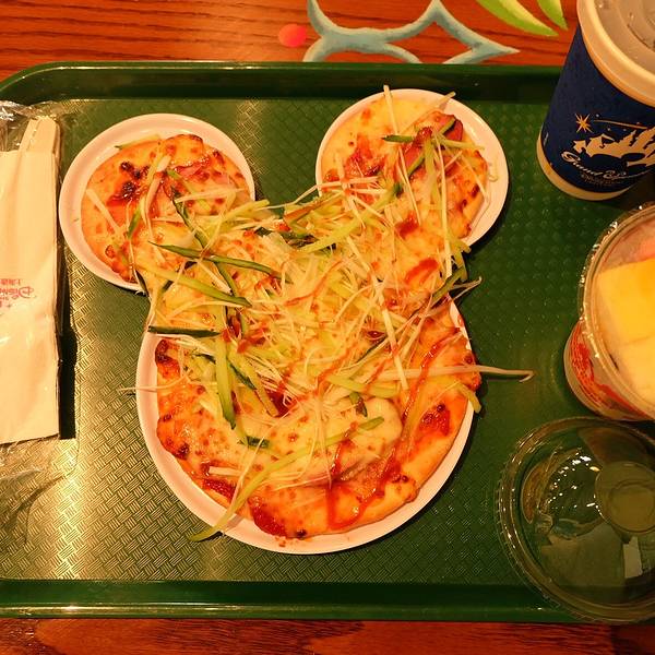 中饭选择了梦幻世界“皮诺丘乡村厨房”吃披萨,都是米奇头像的。 选择了烤鸭披萨配可乐85元,单点了一份水果杯35元。 味道我觉得还是挺好的。吃过午饭距离花车巡游还早,去了“爱丽丝梦游仙境迷宫”,不用排队的...