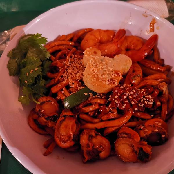 第一晚想吃的,结果人家六点半已经不接客了~~~~(>_<)~~~~ 里面有三个地方点餐,分别是米饭、披萨和面条,面条真的好慢!