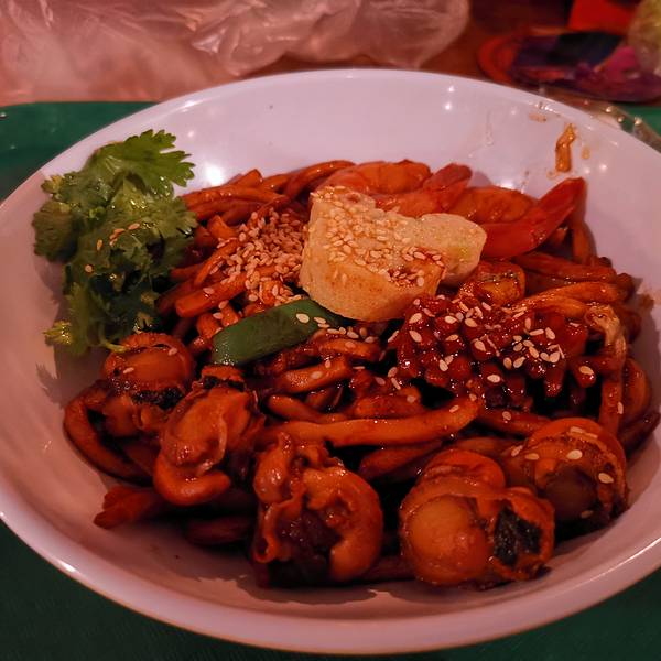 同时,餐厅还供应饭食、海鲜炒面等家常美食。推荐指数:四颗星。人均¥90,餐厅设有专门接热水的区域哦