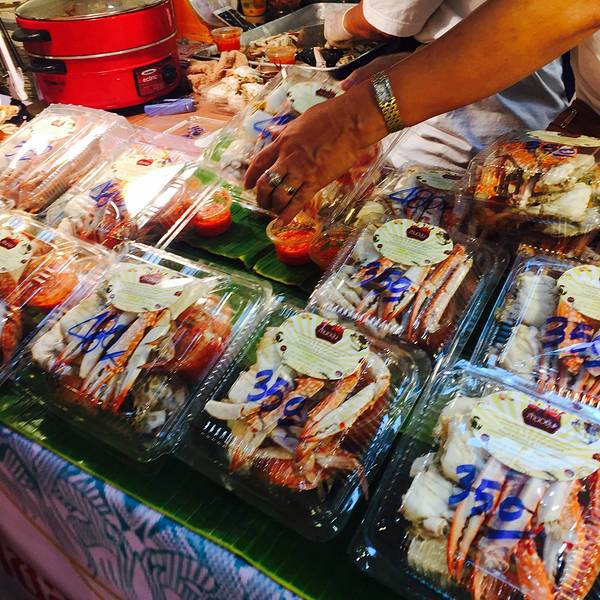 逛完所有的寺庙其实也用不了太久,摩托车真的省去太多步行的时间。预定了晚上泰拳的门票,但是下午干啥去呢。。。所以两个人当机立断,管他是否被查,还是决定出古城去清迈第二个商圈——尚泰中心去看看。现在想...逛完所有的寺庙其实也用不了太久,摩托车真的省去太多步行的时间。预定了晚上泰拳的门票,但是下午干啥去呢。。。所以两个人当机立断,管他是否被查,还是决定出古城去清迈第二个商圈——尚泰中心去看看。现在想想,真的是做的最正确的决定了,也就几公里的事儿,过去摩托车一刻钟完事。买东西尚泰真的完全没优势,一瓶红毒香水这里买的比曼谷还要贵1000泰铢(200块人民币)但是,敲重点,这里负一层吃的太好了!性价比绝对秒杀曼谷夜市啊!各种各样的小吃。还有这个不知名的东西,至今未解。这几天最满足的就是螃蟹了。物美价廉。这边的螃蟹壳子都好软,直接吃都不费劲。十月蟹最肥的时候我们从山东老家空运了梭子蟹,个头都没这个大,壳也没这个软,肉也没这个肥。我这个人吃螃蟹比较小众,最讨厌吃蟹黄,最爱吃蟹钳子= = 所以这个大钳子太符合我的审美了。最最最最喜欢的螃蟹,一大盒大概两只,只要350泰铢,和人民币70块,做好了可以直接吃。35一只的大螃蟹啊真的合适!绝对新鲜。来个对比照。事实证明这个时候去泰国,起码在曼谷夜市啊 大排档啊再也没找到这样的螃蟹了。开始被这个颜色吸引到了。但是事实证明,好看不好吃。旁边有超市出售各种果干,个人推荐不加糖的。事实证明,果干啥的就在清迈买了吧,比曼谷合适太多,免税店?呵呵。。比清迈还贵一倍。就是个坑。