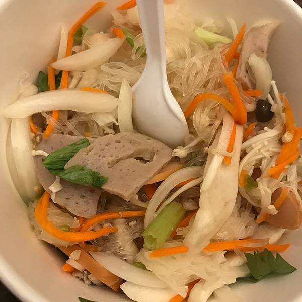 这里负一楼有个超市,还有KFC、星爸爸、DQ雪糕,那天晚上我们在外面的美食摊逛了一圈,吃了个小甜品跟猪肉虾烧麦,还有一碗粉就走了,在吃粉的时候遇到了一对说粤语的夫妻,他们是第二次来清迈,他们说本来是想去二楼吃一家正宗的泰国菜的,他们说是朋友介绍,当地人开的,味道很好价格很便宜。谁知道来得太晚人家都关门了,只能跟我们一样在那里吃面了。不过那家面味道也是不错的,汤底很浓,粉很细。反正我们听了他们说之后就决定找个时间去会一会那个正宗泰国菜店,毕竟吃才是我们的头等大事。