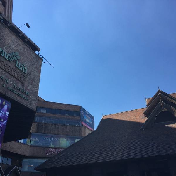 位于古城西北角的central kad suan keaw是附近能找到的最近的商场,远观造型有点像一只高深莫测的古堡,我们到达的时候乌云尾随使它看起来更加幽灵和阴暗,但这都抵挡不住我们逛商场的热情。