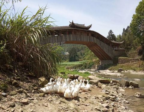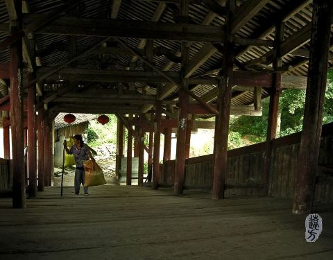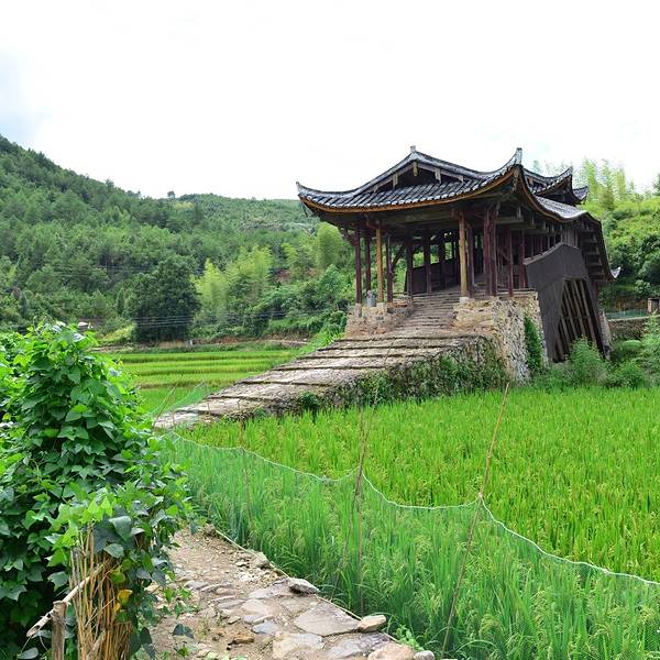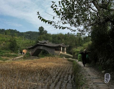 分文不收,完全免费,包括求签,签文就贴在佛龛的旁边,自己对着解就好待到近前一看,那桥果真如此,俏皮得很,给人一份轻松的快意。不时看见有经过的村民,桥是他们每日劳作、归家都会经过的地方,已然是他们生活的一部分。 一头高一头低的设计,使得文兴桥的桥面更加陡立,在一侧...待到近前一看,那桥果真如此,俏皮得很,给人一份轻松的快意。不时看见有经过的村民,桥是他们每日劳作、归家都会经过的地方,已然是他们生活的一部分。 一头高一头低的设计,使得文兴桥的桥面更加陡立,在一侧桥头完全看不见桥的另一头,更加深了要走过去看看的欲望。却没想在桥正中看到了一座佛龛,佛龛里有彩塑的神像,香案里有残留的香。 有一位守桥的婆婆,看见香烛少了就会及时地添加,以方便路人。分文不收,完全免费,包括求签,签文就贴在佛龛的旁边,自己对着解就好。 桥的另一端连着一条古道,迤逦伸向远方。古时的廊桥是交通的必要连接,因此,每一座廊桥都连着这样的古道。许多的古道已经废弃,廊桥作为连接河两岸的枢纽而得以保留,亦算是一种幸运。 展开