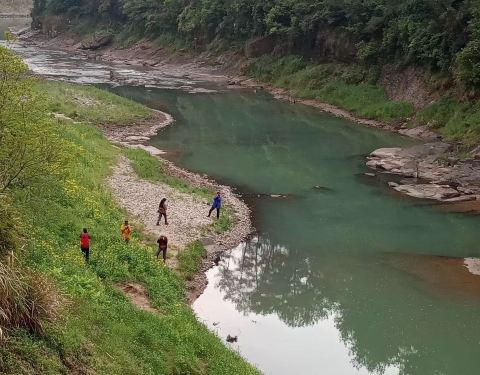溪边种着大批的油菜花,清明刚过,菜花开始结籽了,菜黄季节想必风光更美