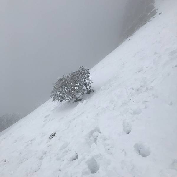 看我的帽子,靓丽的风景线。越往上雪越大。我和同行小伙伴到顶,没有其他人估计都是拍拍照片赶紧下山