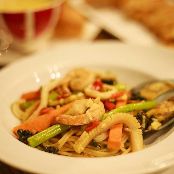 据说这里日落的时候景色最好,好可惜没能早一点来。在餐厅把餐点了,趁着还没有上菜,和小伙伴到园区里去拍拍照片。这个灯塔是可以上人的,上面可以看到园区的全景,上去拍了两张照片就下来了。很喜欢门口的复古老爷车,不过今天穿的衣服和环境不是很搭。这里就像是一个童话小镇,遇见很多中国游客带着小朋友过来玩,下次来曼谷一定要专程过来逛逛。回到餐厅时,我们的菜都已经上好了,主食点了辣的意面,只是这个辣度作为川妹子的我都有点受不了。话说这里的用餐环境是真的棒是好,但是菜品的口味感觉就很普通了。烤面包味道不错,为了填饱肚子吃了好几块。熔岩蛋糕,味道是很不错的还可以,只是我们在外面拍照,冰淇淋都化掉了。