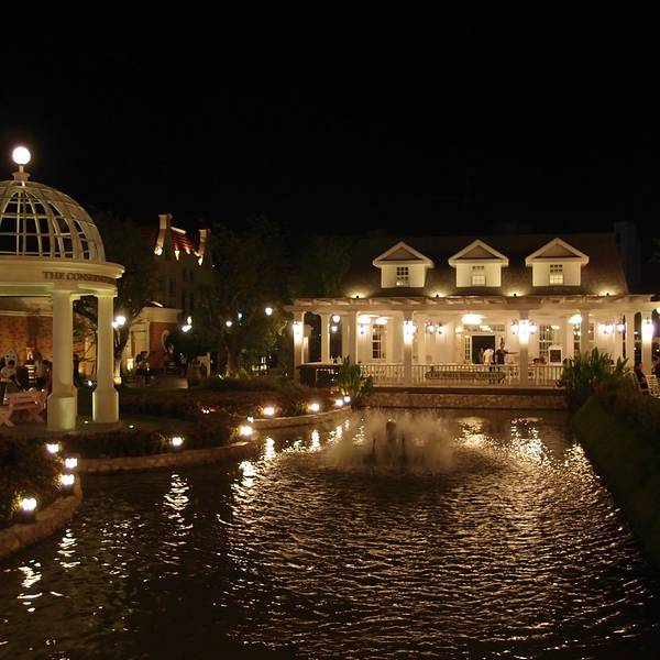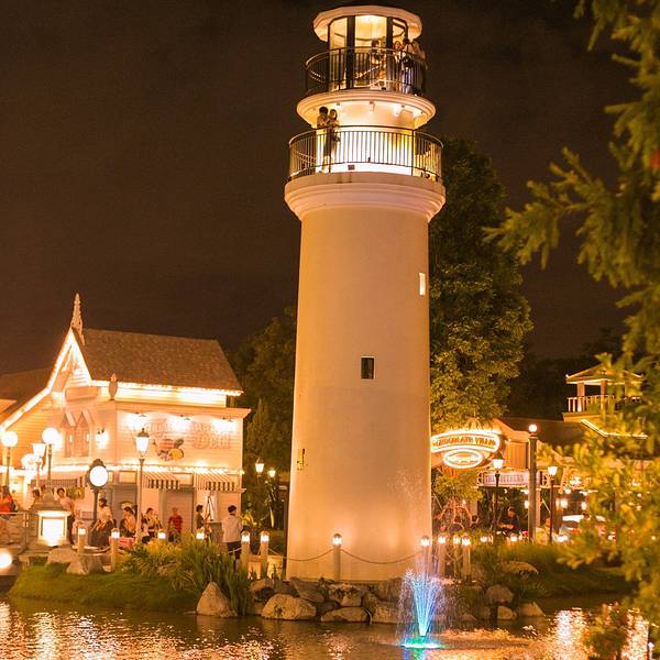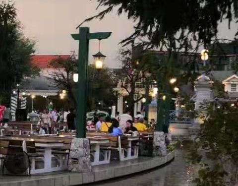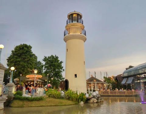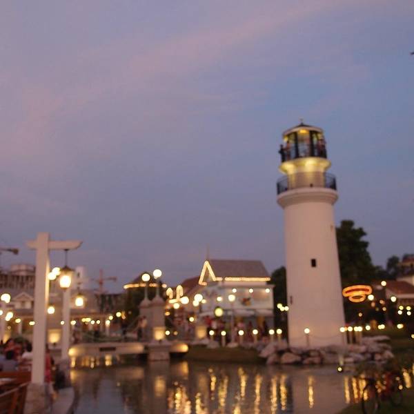 欧洲风格的小镇,灯塔、小桥流水、以及设计装潢可爱的房屋,俨然一个小公园,很适合来这里拍照取景凹造型。餐厅主打泰餐和西餐,用餐环境一级棒。夜幕降临,华灯初上,这样的巧克力庄园多了几分浪漫和诗情画意。