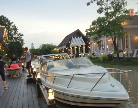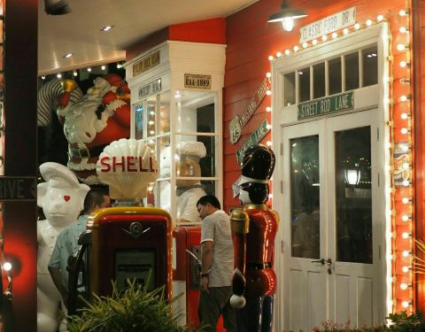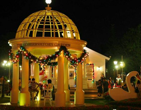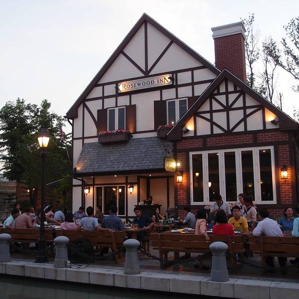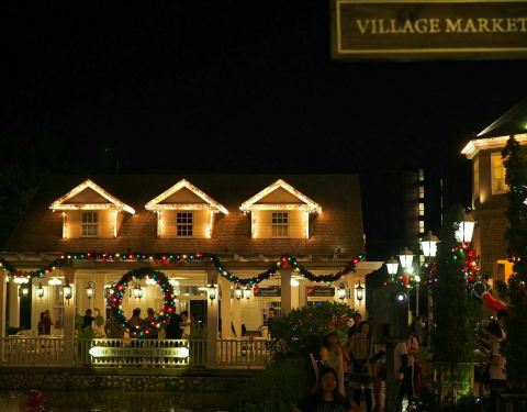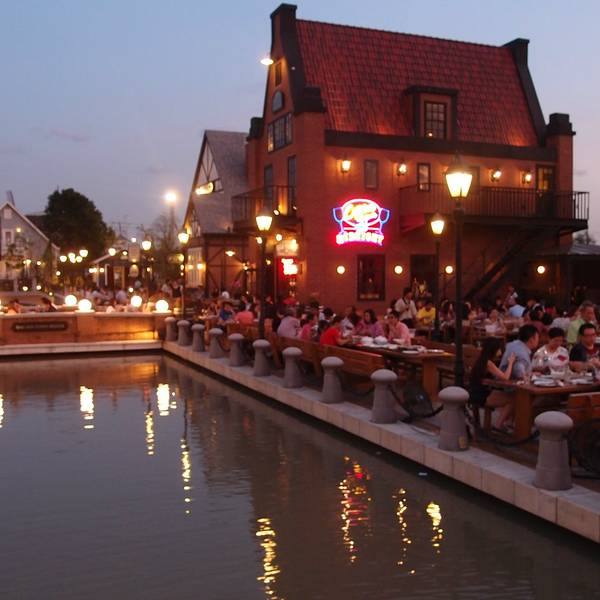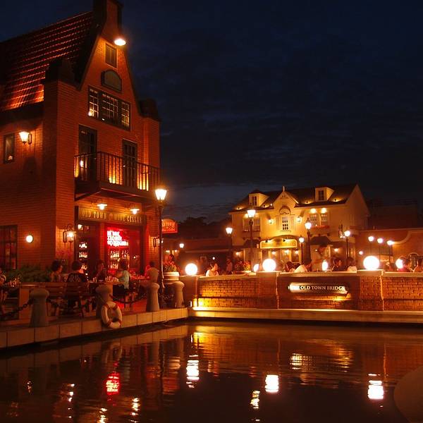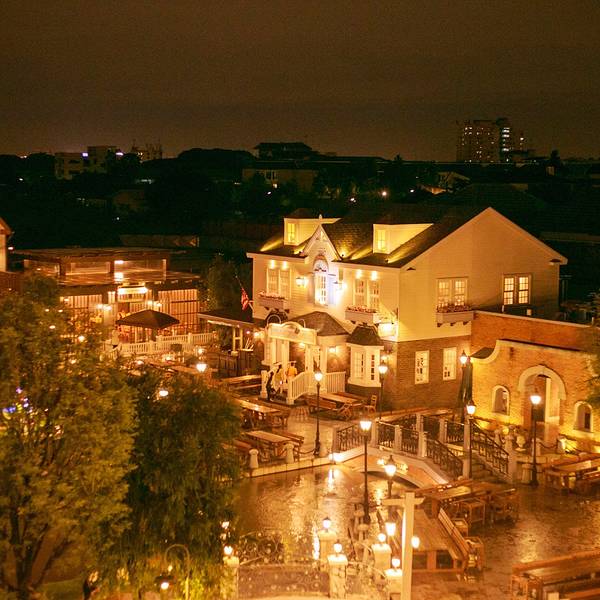 “Chocolate Ville”的老板是做巧克力盒起家的,所以就有了这个名字。还没有正式踏进餐厅,门外的小店已经吸引小资的眼球了。外面是一个停车场,周围就是被充满欧陆风格的小房子包围。走进去之后,有一个小小的码头,感觉就像是小威尼斯,这艘船小资只看到有工作人员坐在上面打捞河上的树叶。有一个小小的亭子,让人置身在欧洲的某个花园。餐厅范围内有很多这样的店,不过,有很多都不是真的在售卖东西,里面可能只是一些摆设,让游客拍拍照。就像这里,游客都可以坐在这边,因为晚餐时间还没有到,职员都不会打扰你的休息。小河的两边就是餐厅了,小资最害怕的就是吃饭要等很久,所以在晚餐开始之前,早到了很多。但是平时在晚餐时间大家最好就是先预约,不然需要等上一段蛮久的时间。两岸的餐厅都没有冷气,正值炎夏也不要担心会吃得满头大汗的,自然风吹过来,整顿晚餐都会觉得很舒服。到了用餐时间,人真的变很多。吃完晚餐不能错过的,就是登上这个小型灯塔,免费的,可以看到整个巧克力庄园的夜景。交通资讯:自由行的小资是坐计程车去的,因为在市中心没有捷运可以到这边,也找不到有什么公共交通工具的。