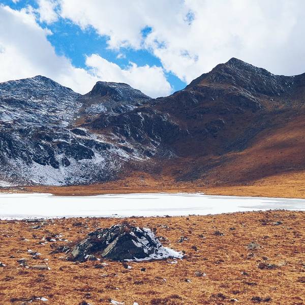 四川省甘孜藏族自治州丹巴县莫斯卡自然保护区内的一个漂亮的高山湖泊,因多有金雕在此生活,被当地人称为“骨岑”,即用骨头筑巢的意思。海拔4600米,由两个相邻的一大一小的湖泊组成。