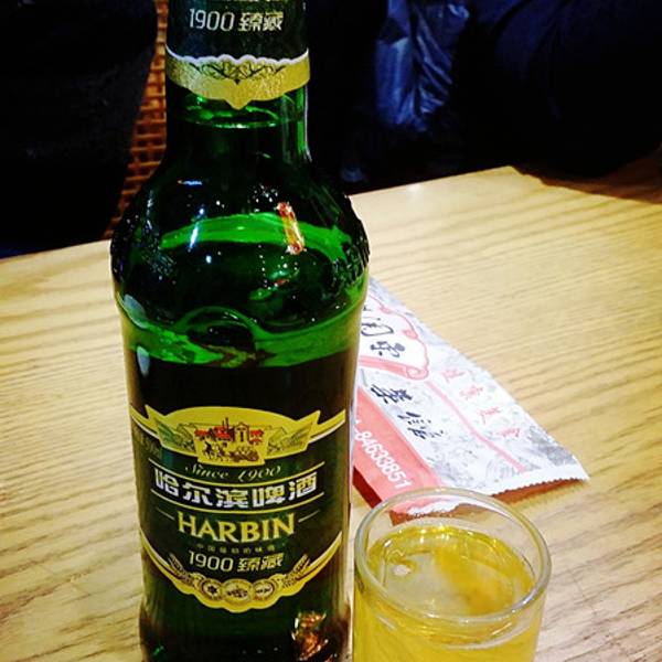 道里区红霞街42号,其实也就是在中央大街上,这顿是到的第一天小伙伴请的晚饭,地道的东北菜,但是地方差异,我们不知道东北的朋友晚饭那么早开始昂四点刚吃了顿毛毛熏肉大饼,五点又开吃晚饭,战斗力嗷嗷的下降啊不过每样我们都尝了尝,味道很正点,是我喜欢的东北菜,推荐,他家客流量也是相当的大,我们五点多一点去的,上座率就非常的高了,非常地道的一家东北菜馆。哈尔滨啤酒比我们在家里的时候喝到的好喝哎,嘿嘿嘿