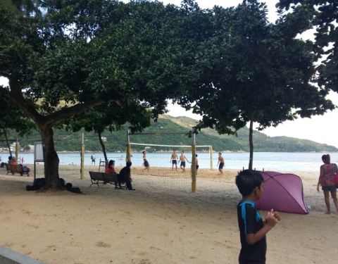 沙滩还是比较多垃圾的,沙子也比较粗,但是水质还是可以接受,水比较清,还可以看到很多小鱼呢。就算下午四点太阳很打,依然会有树荫,这个不错。