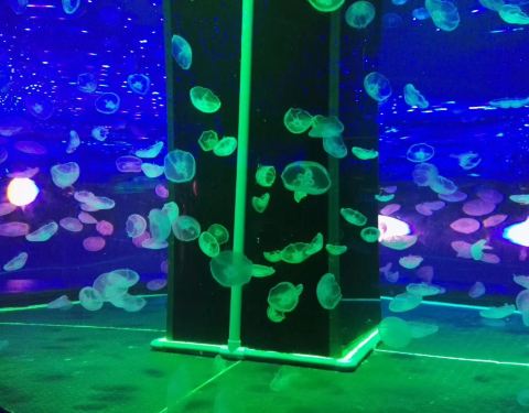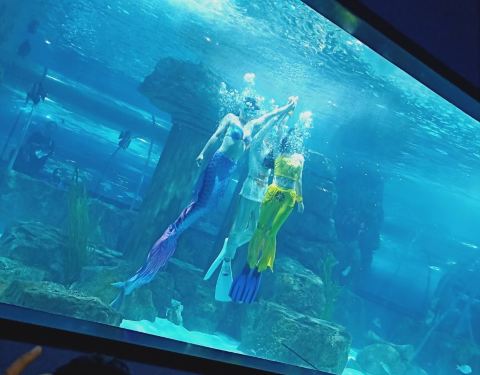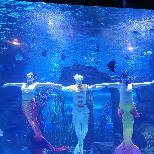 但是没看到美人鱼,时间没把握好,门票也有点儿小贵,下次还是夜场去好了但是没看到美人鱼,时间没把握好,门票也有点儿小贵,下次还是夜场去好了。水母很漂亮在灯光下很美,表演的节目也很不错,大家都喜欢。