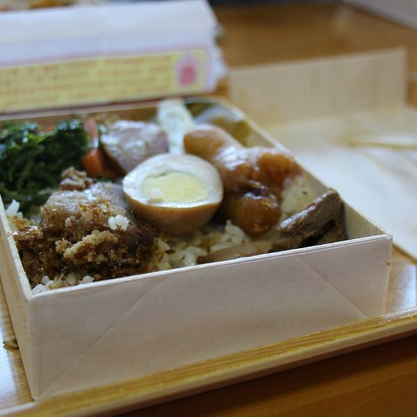 下面是图片时间~~这就是大名 鼎鼎的池上便当~木盒的~能够吸收菜里的油脂,让饭菜更好吃也更清爽这就是打开以后的样子了~70NT还可以~不过说实话咱这种最没那么叼的也没觉着这个米有多么特别好吃。。不过肯定不是不好吃:P