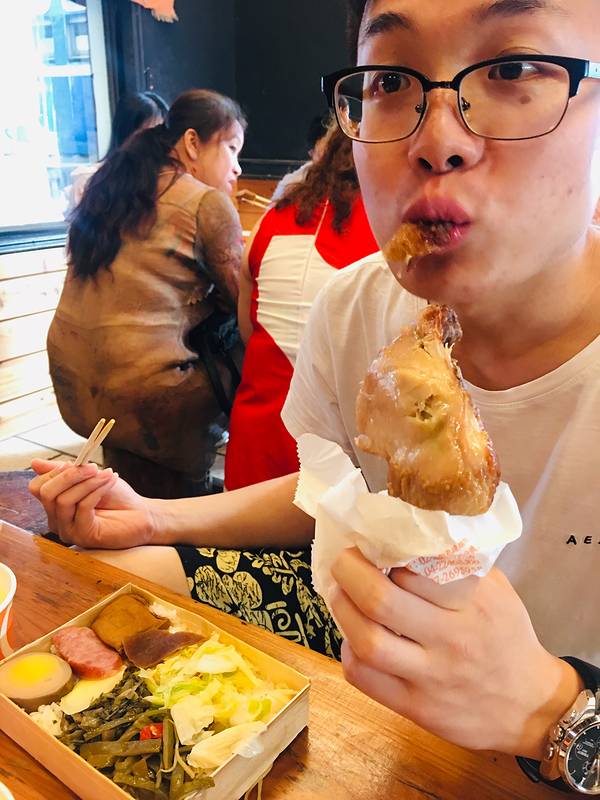推荐大家点鸡腿饭,就是我这个!一定要先去排队,没必要先找座位,因为很快就会有空座位!好好吃