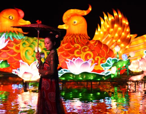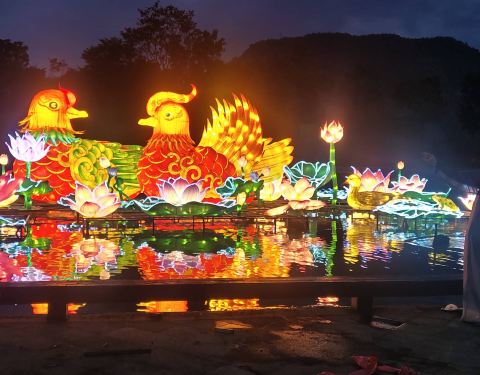 去的时候刚好里面在布置灯会,还有江南水乡的摇橹船,灯会的质量不错!听说8月8号开园!