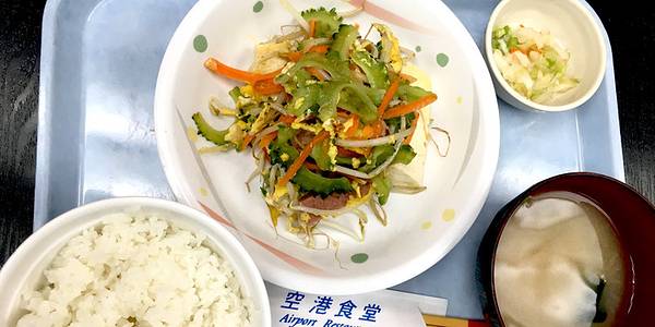位于那霸机场国内线内,可以吃到冲绳料理的店,价格公道。在机器上购买餐票后,将餐票交给服务员即可。套餐味道都中规中矩,猪排盖饭里的猪排软香,冲绳荞麦面清淡易吃,苦瓜炒蛋苦得恰到好处,很下饭。如果你的时间充裕,可以去国内线尝尝这家冲绳料理。