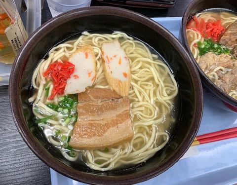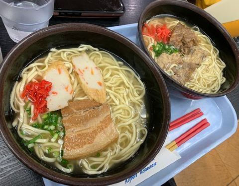 - 那霸空港食堂,猪软骨面和冲绳荞麦就有名了!确实不错,汤很鲜美