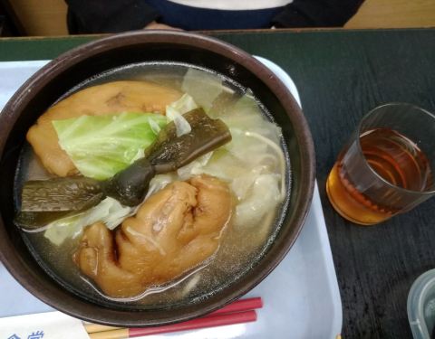落地之后第一餐 挺好找的 在琉球银行左手边的过道里 店内点餐机旁有中文或英文的图片菜单 虽然点餐机上写的都是日文吧 这时就体现出服务好了 会有人帮你选 你拿图片告诉她 她就帮你操作机器了 而且我那天机器上...落地之后第一餐 挺好找的 在琉球银行左手边的过道里 店内点餐机旁有中文或英文的图片菜单 虽然点餐机上写的都是日文吧 这时就体现出服务好了 会有人帮你选 你拿图片告诉她 她就帮你操作机器了 而且我那天机器上显示没有亲子丼了 她点了同样价格的丼饭 在条上手写改了 而且怕我听不懂日语不能取餐 就让我回到座位 好了她给我端过去的 餐食真的是经济实惠量又足 猪脚面650 两支猪脚 面也很劲道 亲子丼600菜量不大 但也够吃 自己取免费的热开水 或柠檬茶 还有冰块随意添加 用餐完毕 自行把餐具端到窗口 纸类放进垃圾箱