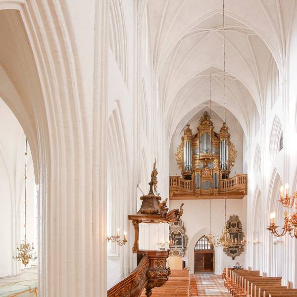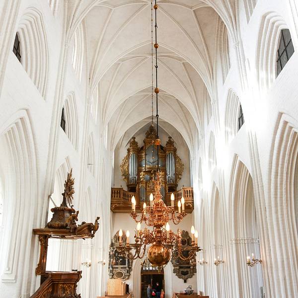 Sankt Knuds 教堂坐落于欧登塞中心,是一座建于14世纪的哥特式大教堂。教堂规模很大,有一座精心装饰的洛可可式讲道坛、一个让人眼花缭乱的16世纪的圣坛雕刻以及300多个雕塑作品。丹麦的国王KUND于1086年在圣阿班教堂遇刺,后来就被埋葬在以他命名的这个教堂里。开放时间:10:00-16:00