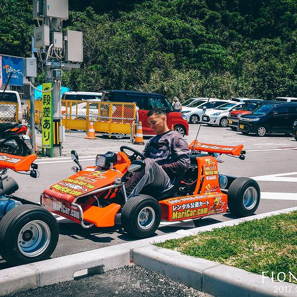 出发去濑长岛 ,这里有冲绳“小希腊”之称~港台客人知道的比较多,交通方式只能自驾哦!其实有挺多人会选择住在这里附近的民宿或酒店,一整个假期就泡在这里。这里不仅景色迷人,沿街还有商铺餐饮,看到老外在玩卡丁车~唯一要注意的是,真的非常晒!而且没什么遮阳的地方,大家记得抹好防晒霜啊~~日本游客还很热情的帮我们拍照~午餐就在这里选了一个海景餐厅,吃石垣牛牛排套餐~