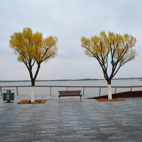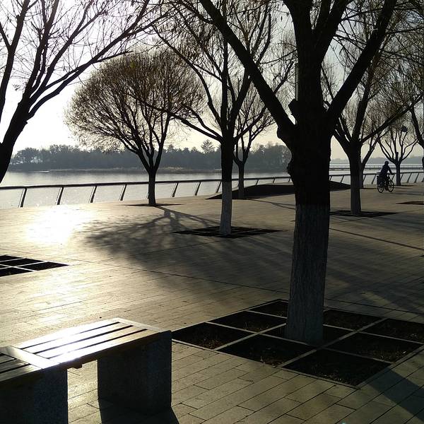 由于到得太早,大同博物馆还没有开门,随便走走看着就走到文瀛湖边。 文瀛湖位于大同市御河的东侧,属古御河冲积平原的一部分,是一个天然洼地,古称“文莺湖”,是大同市周边少见的天然湖泊,也是来自西伯利亚的候鸟向南迁移的暂时栖息地之一。公园总占地面积686万平方米,其中水面面积378万平方米,绿化面积268万平方米,园林建筑面积39万平方米。背景介绍: 2008年,曾经面积超过10平方公里的文瀛湖,已萎缩成面积不足1平方公里、深度不过数十厘米的浅滩,堤内湖底不少地方也被周边农民非法占用变成农地。虽然文瀛湖在大同市整体规划中,是未来服务于御东新区的城市公园之魂,然而一个没有水的湖泊,连最基本的定义都无法满足,遑论提供给大同市民一个好的休闲环境。因此,2008年大同开始了修复文瀛湖湖底不透水层的综合工程,最终才有了如今的美丽文瀛湖。该工程还收获了英国风景园林协会大奖。