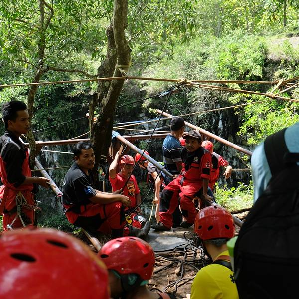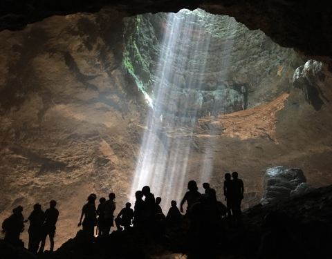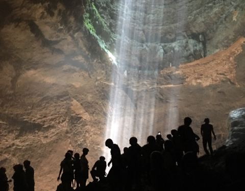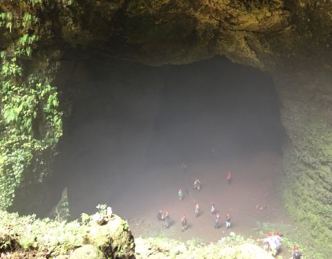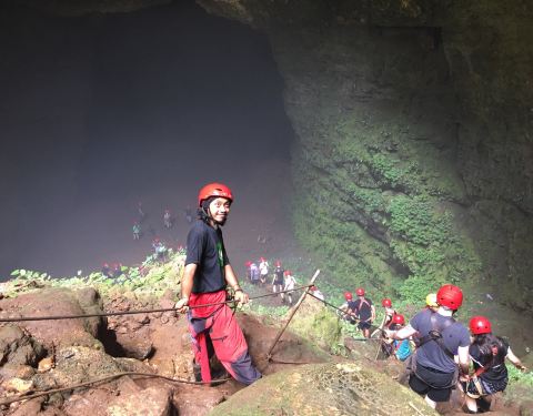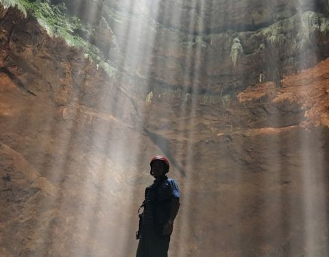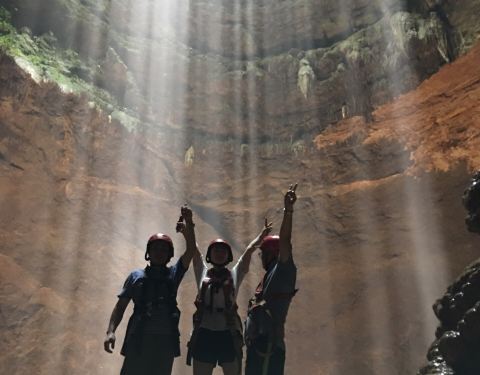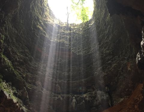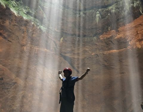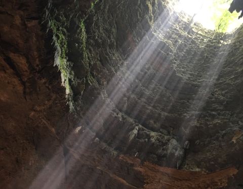 洞顶直射的阳光大约中午时分照射下来,不过10点以后开始游客开始按照先到先得的顺序陆续速降至洞底,如果速降得比较晚,在洞里呆的时间可能会比较短,建议在9点前到达。